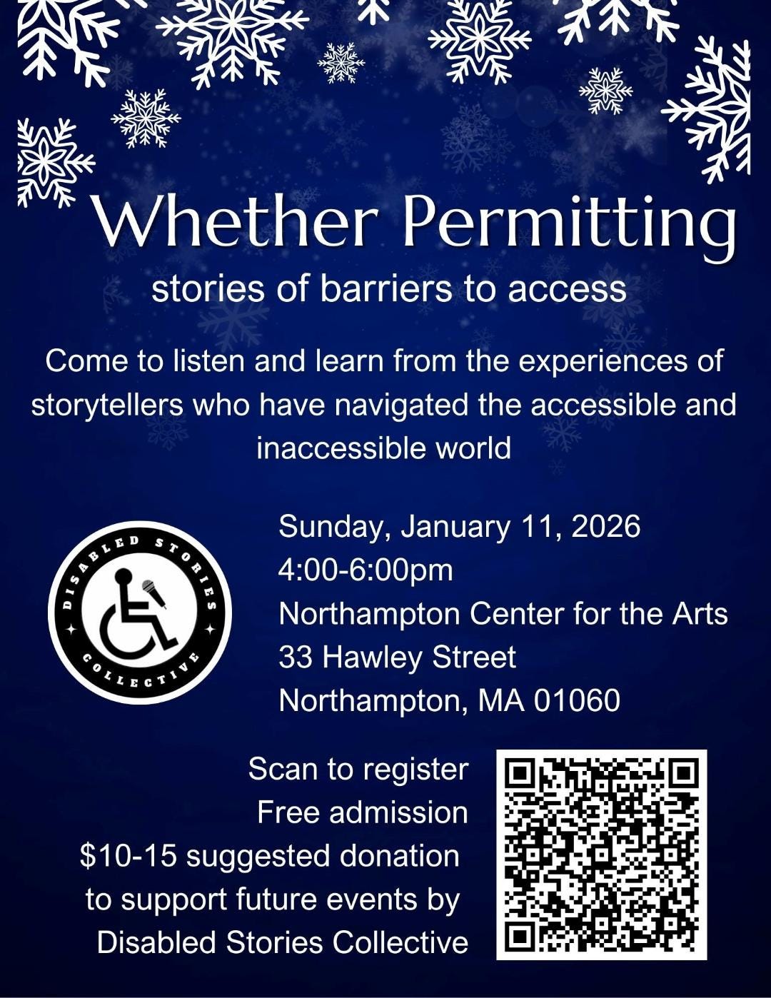 The Influencing Continues. Another thing that is making me excited about 2026 is that I will be joining an event as a storyteller next Sunday, January 11, from 4 to 6 p.m. EST. I will be telling a story, like The Moth Radio Hour!, about accessibility. I am going to cannibalize this Substack mercilessly. Any readers in the western Massachusetts area should come watch me and cheer loudly every time I say something funny. It’s free, though a suggested donation to DISCO (DIsabled Stories COllective) is appreciated.